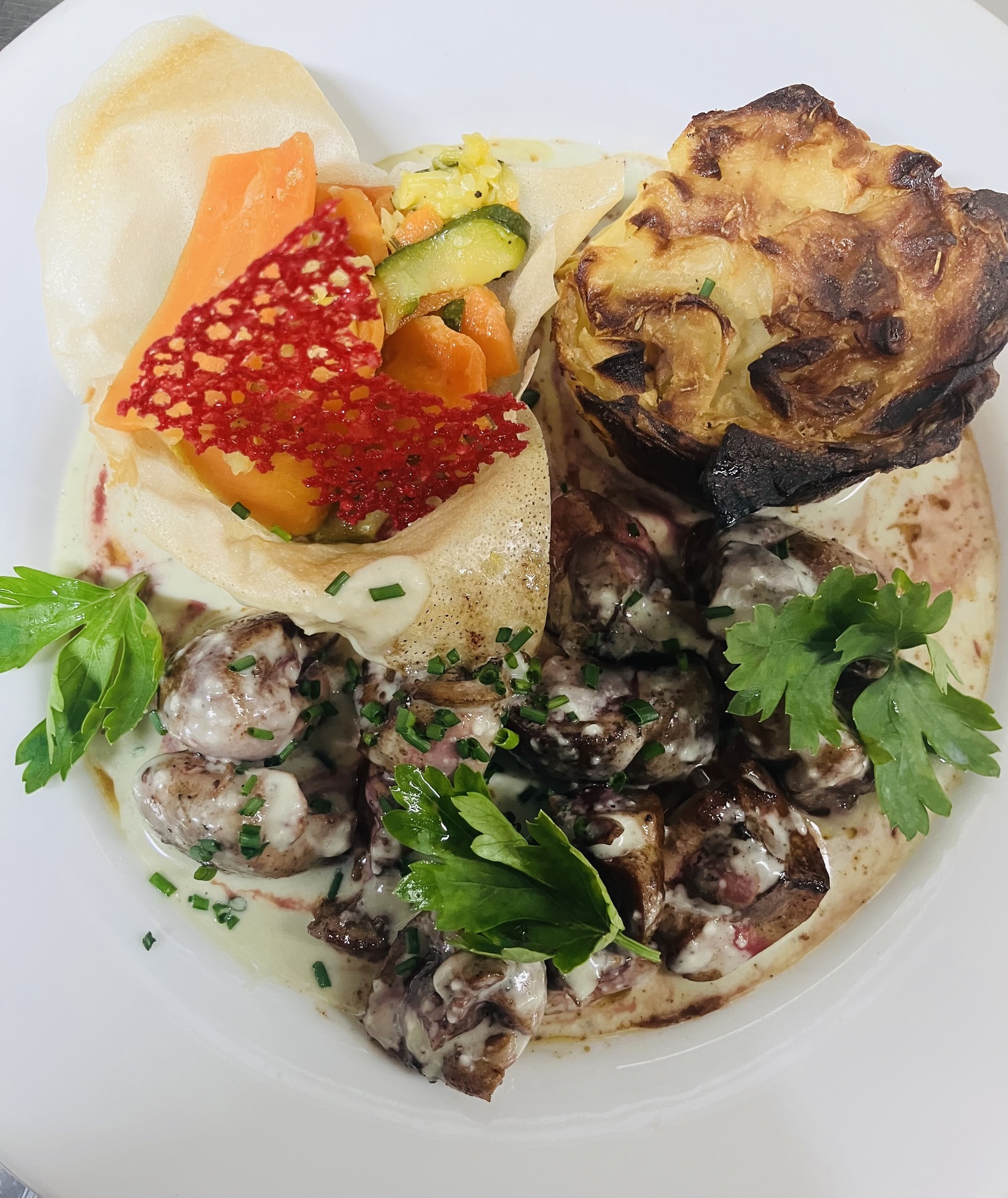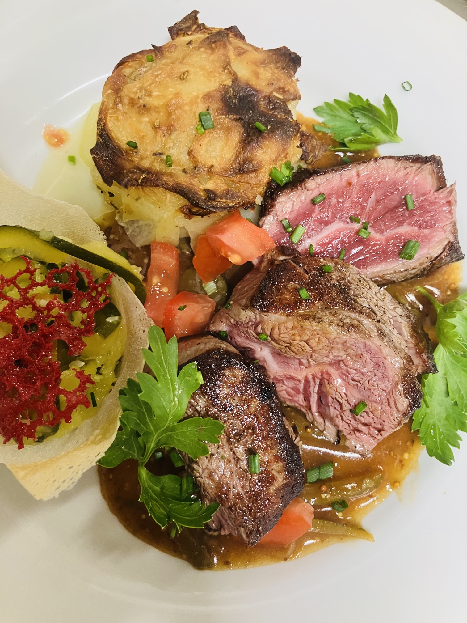 Nous vous concoctons une cuisine inventive, changeant au rythme des saisons et nous vous proposons 4 Nouvelles Cartes par an .
